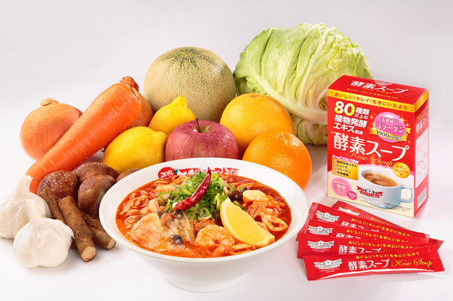 また、今回の『太陽のトムヤムトマト美麺withドクターシーラボ』は、80種類以上の植物発酵エキスや美容成分配合の酵素スープを配合しており、カロリーも他のラーメンと比べると低く、美容成分として有名なリコピンを豊富に含むトマトを使用しているため、アンケート結果の通り、女性の求めるラーメンと合致している事が伺えます。
